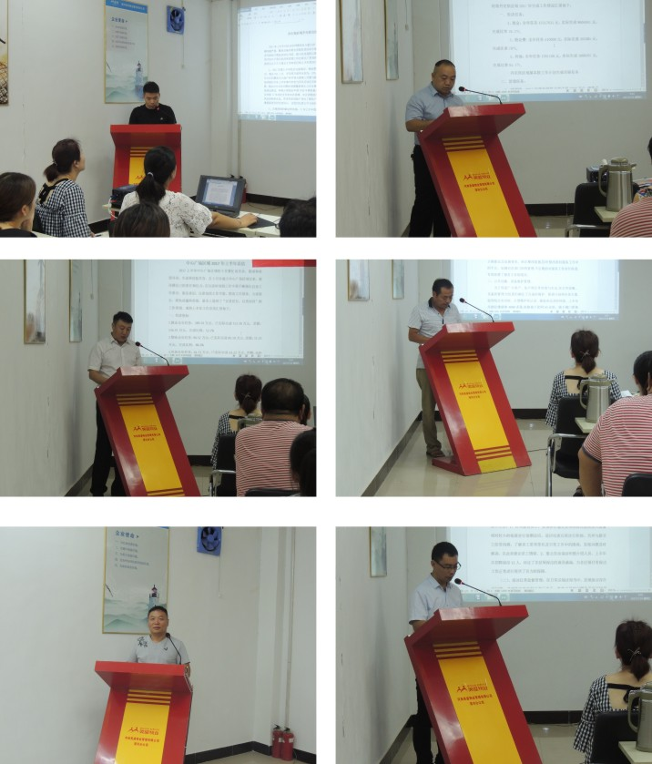 各部門負責人分別結合各自上半年工作開展情況,認真總結分析工作中的成果、得失、優勢及存在的問題及不足;并對下半年工作提出明確方向及可行計劃,針對當前不足及工作中尚未解決的問題做風險評估,提出新的方法及思路。