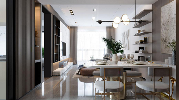 以現代人文的方式,交織出風華、美和韻律,將它們恰如其分地安置在生活空間里。在建面約138㎡四室兩廳兩衛的戶型里,整個空間低調而雅致,不失奢華美感。270度的觀景陽臺,讓四季之景相伴每一個平凡日常。