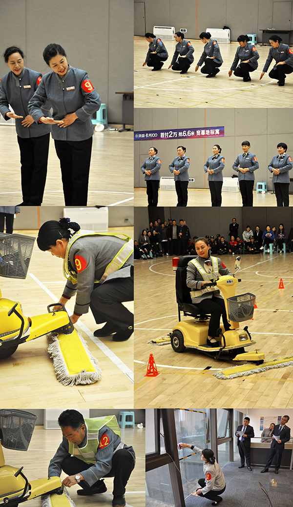 窗明幾凈是衡量清潔服務(wù)最基礎(chǔ)的一項(xiàng)標(biāo)準(zhǔn),在后期項(xiàng)目清潔服務(wù)工作中,窗戶清潔工作量大、這要求操作者要具備過硬的技能,靈活、安全的運(yùn)用玻璃器來(lái)清潔窗戶,安全、高效的解決高空公區(qū)玻璃清潔問題。看我們參賽的各代表隊(duì)清潔能手,玻璃器在他們手中輕松滑動(dòng),猶如書法家的揮墨潑毫,一氣呵成,沒有絲毫的停頓,眼前的窗戶玻璃一塵不染,透過冬日的陽(yáng)光,折射出不同的光彩。