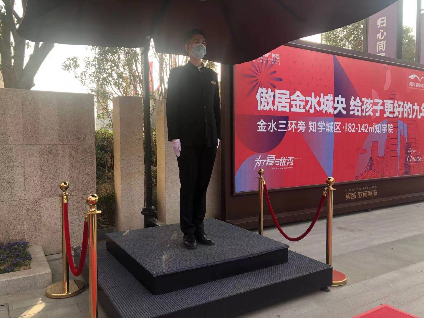 走近教育港灣營銷中心停車場,一個(gè)身穿工裝帥氣的大男孩就會(huì)出現(xiàn)在您的眼簾中,挺拔的軍姿,標(biāo)準(zhǔn)的敬禮再加上一句“ 您好,歡迎參觀美盛教育港灣! ”