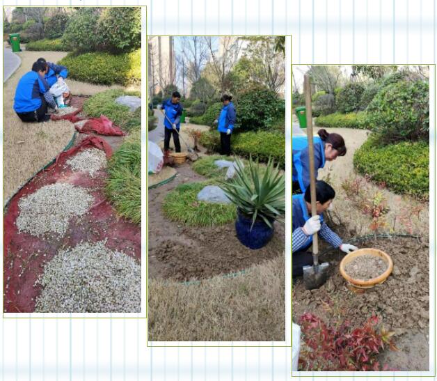 一次園區(qū)巡查,吳大姐注意到小區(qū)2號樓北邊綠化帶的石子,因經(jīng)常被孩子們當做玩具亂扔,有點變色,影響園區(qū)的美觀。于是帶領員工將變色的石子清除,秉持環(huán)保和節(jié)約理念,用平時收集的花盆栽種了一些花卉,不僅使園區(qū)綠化帶煥然一新,同時也將資源利用最大化。業(yè)主每次走到這里,都會頓足觀賞半天,贊不絕口。