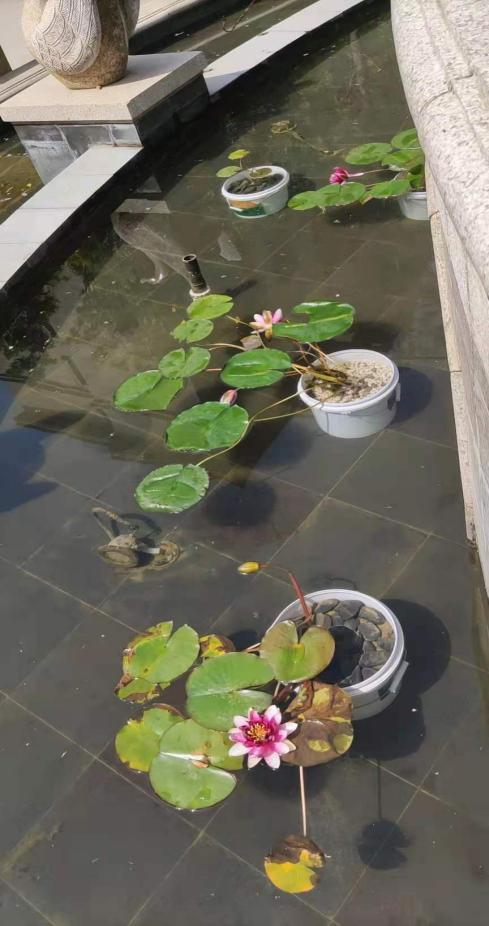 南門的噴泉水景過于單調(diào),她找來睡蓮,放在水里,不僅凈化了水景,同時也讓噴泉看起來更加美觀。