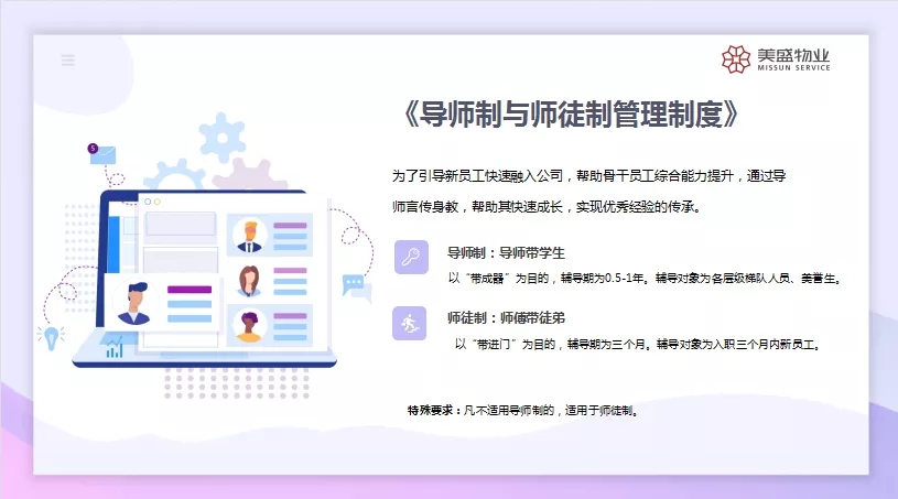 本次頒獎嘉賓為河南美盛物業管理有限公司常務副總經理馬志強、人力分管副總經理史艷芳,同時他們也有著另一層身份——美盛物業內部講師。兩位領導也對各位講師提出更高要求,希望大家在未來發展的道路上,堅持學習提升,堅持人才培養,輸出更多優質課程,為美盛物業人才培養打下堅實基礎!